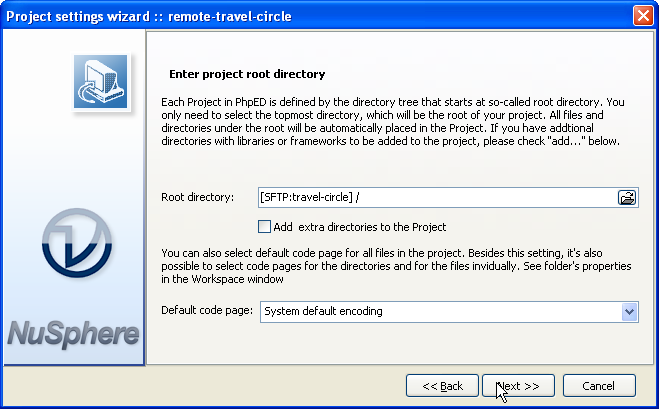 And make sure to select your SFTP (or FTP or any other file transfer account) as a Root Directory of the project: