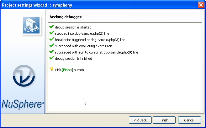 Ironically the most difficult task which is debugging of Symfony application is very easy if you have good PHP IDE. If you used Project Settings wizard in PhpED NuSphere's dbg - PHP debugger is already installed on XAMPP's apache. There is more than one way to start debugging session: