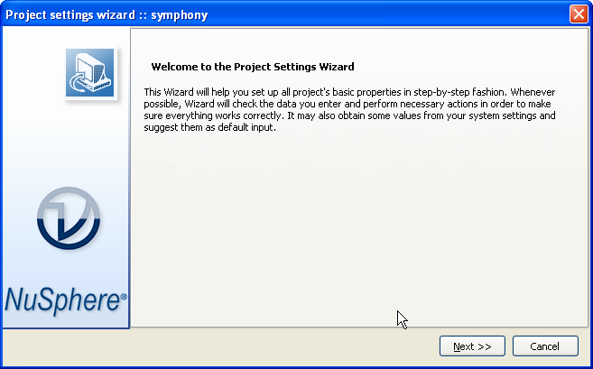 PhpED Project Settings Welcome Screen: