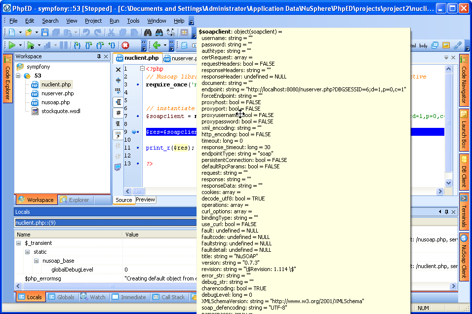 Having the author of Dbg (http://www.php-debugger.com) for CTO and Vice President of Engineering sure helps the company making PHP IDE. While free version of Dbg is used in many PHP IDEs out there, including the ones directly competing with NuSphere, PhpED enjoys the advantage of having the best features of commercial version of Dbg. You can step through the code running both locally and remotely (the latter is only available in Professional edition), look at the variables, assign values on the fly, jump around in the code during the execution, set the watches and do clever things to debug your Ajax calls - as we described here: https://www.php-editors.com/articles/debugging-php-json.php.